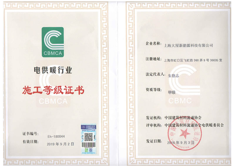 電供暖行業施工等級證書